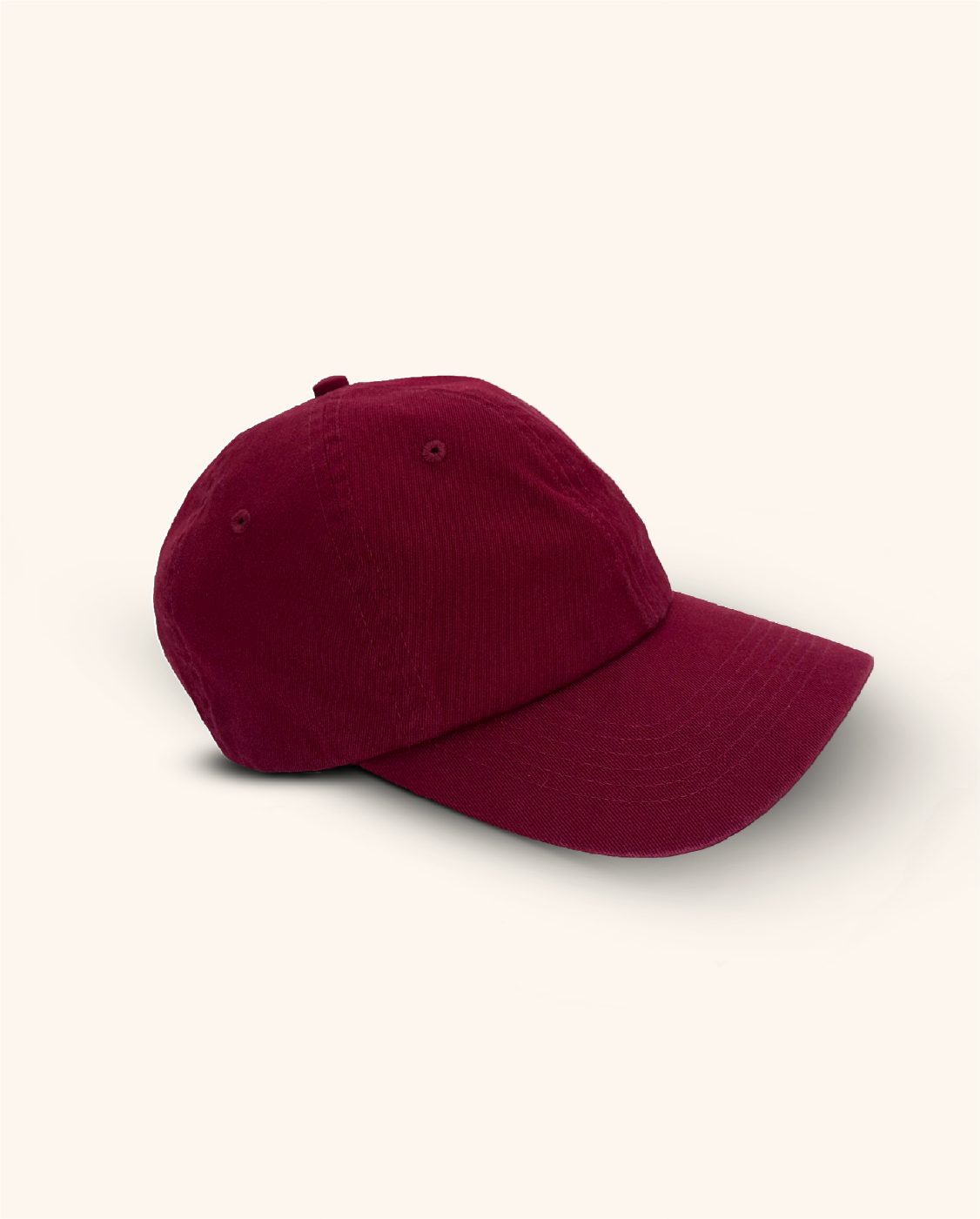 Crafted with a relaxed fit and vintage cotton canvas, this DAD cap exudes a cool and relaxed vibe with its lightly curved brim. In a soft maroon color with calm green contrast details on the back strap and sweatband, it adds a pop of color to any outfit.