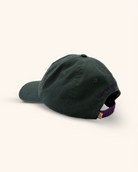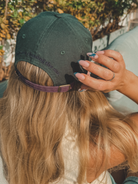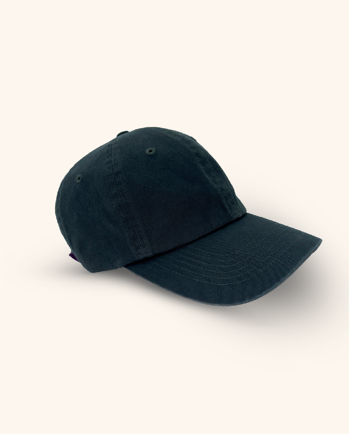 Crafted with a relaxed fit and vintage cotton canvas, this DAD cap exudes a cool and relaxed vibe with its lightly curved brim. In a deep green color with purple contrast details on the back strap and sweatband, it adds a pop of color to any outfit.