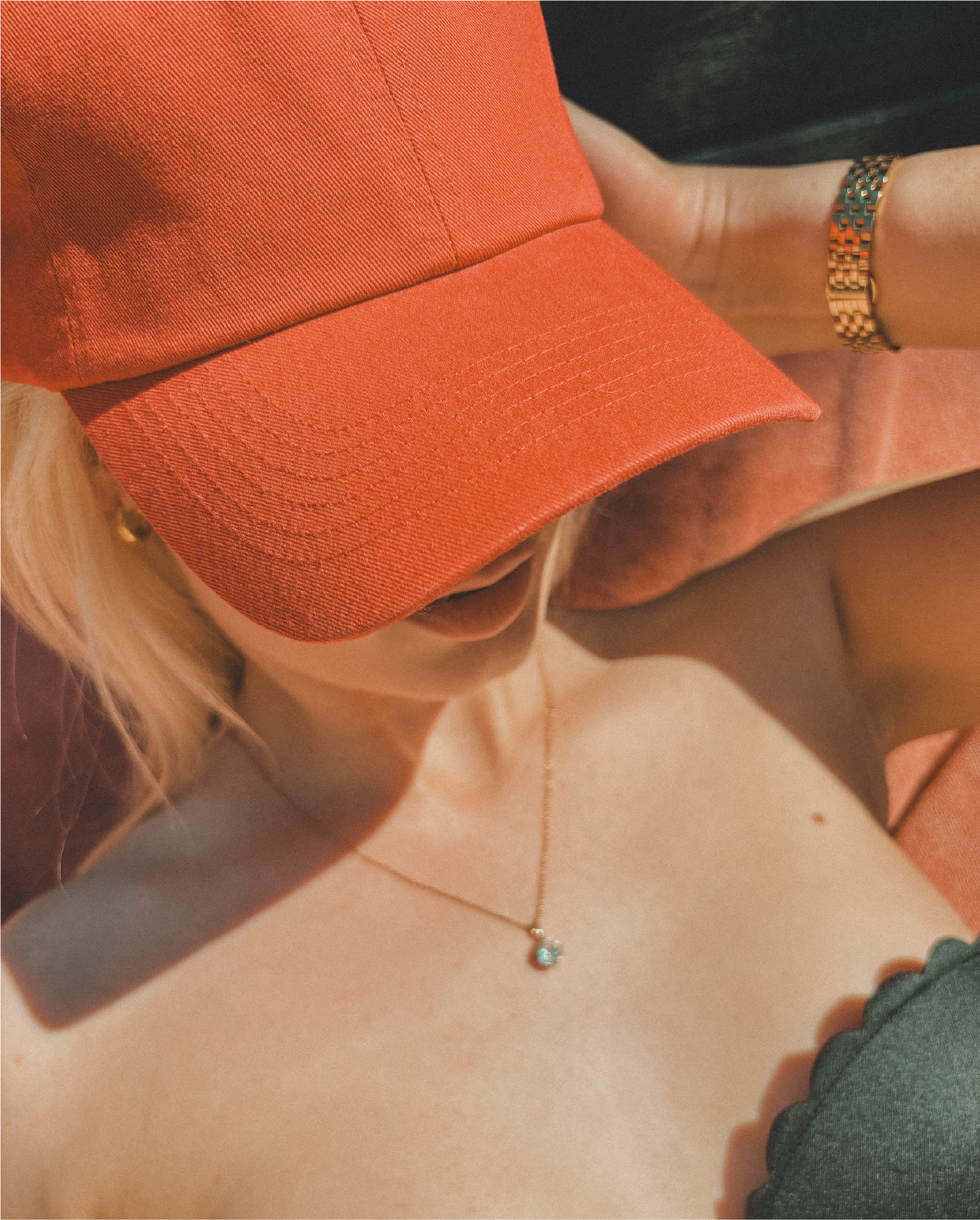 Embroidered with our signature quote, "forever chasing the sun", in playful coral pink lettering at the back, this cap captures the essence of endless summers. Complete with a self-fabric adjuster at the back with vintage metal sliders and a push button for easy adjustments, it's the perfect accessory for embracing sunny adventures with style and confidence.